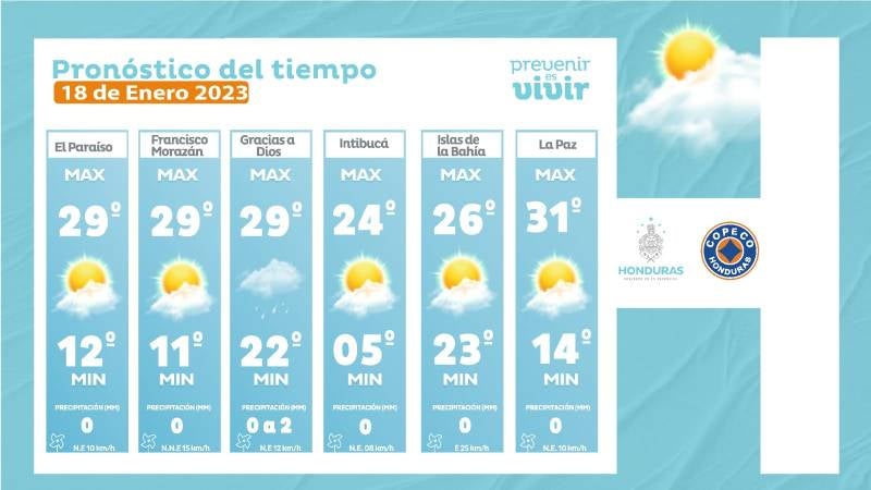- Olancho: 29° como máxima, 15° como mínimas (0 milímetros)
