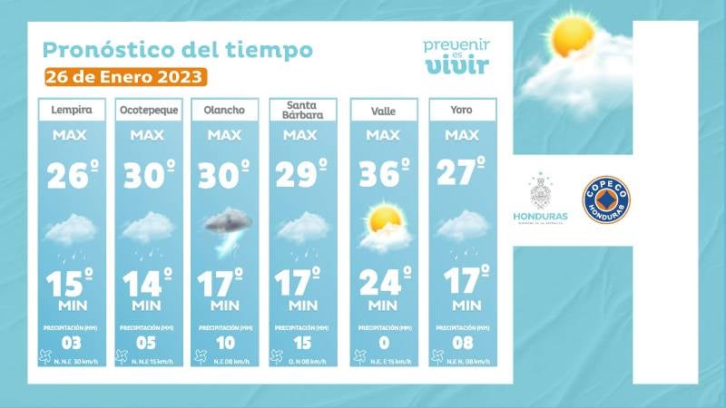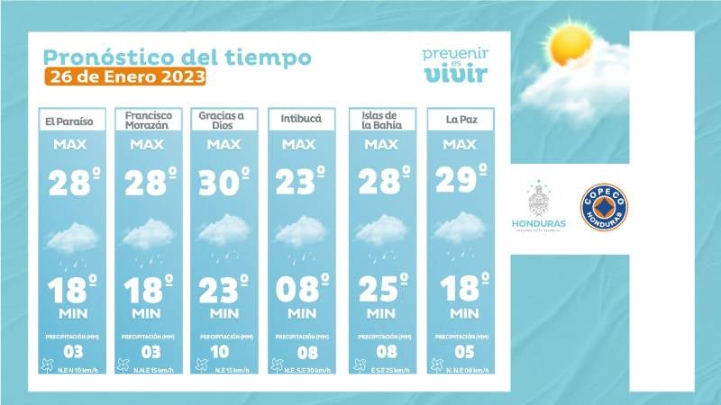 - Tegucigalpa: 28° como máximo, 18° como mínimas (03 milímetros)