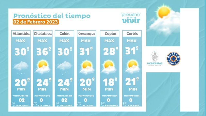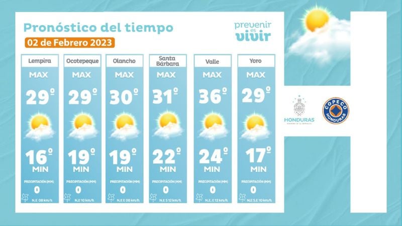 - Ocotepeque: 29° como máxima, 19° como máximas (0 milímetros)