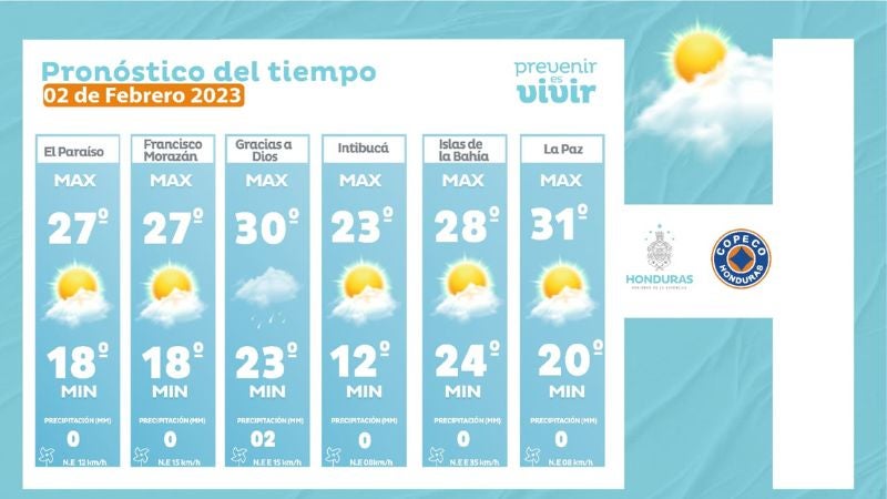 - Olancho: 30° como máxima, 19° como mínimas (0 milímetros)