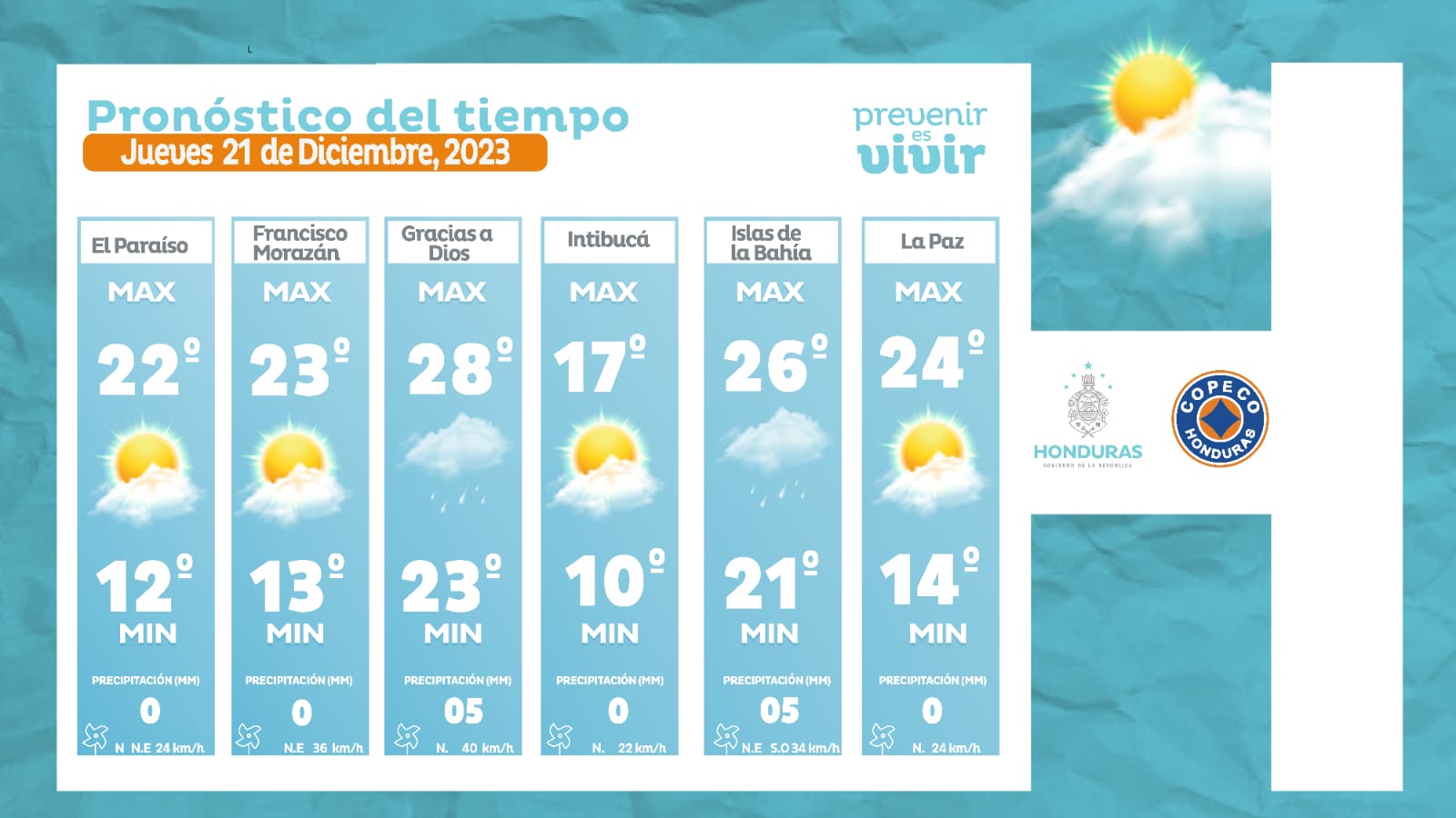 - Ocotepeque: 24° como máxima, 15° como mínima (0 milímetros).