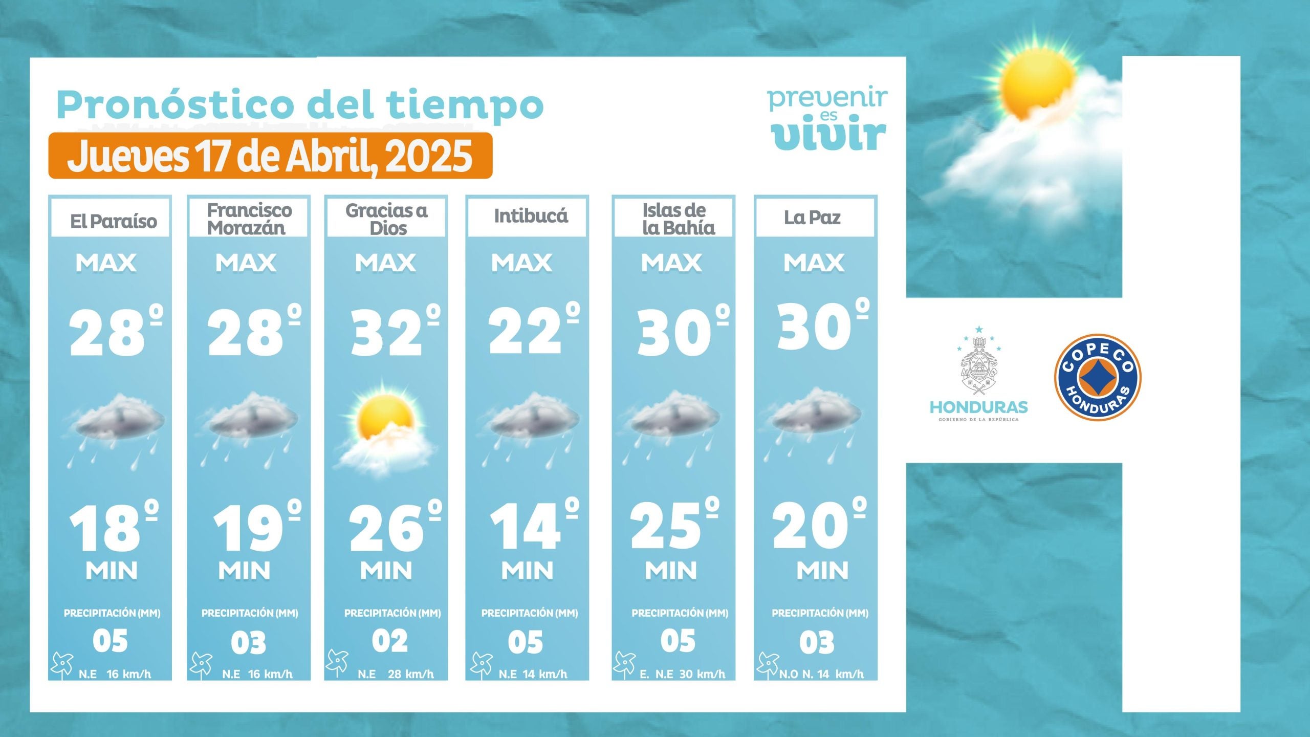 - Tegucigalpa: 28° como máximo, 19° como mínimas (05 milímetros)