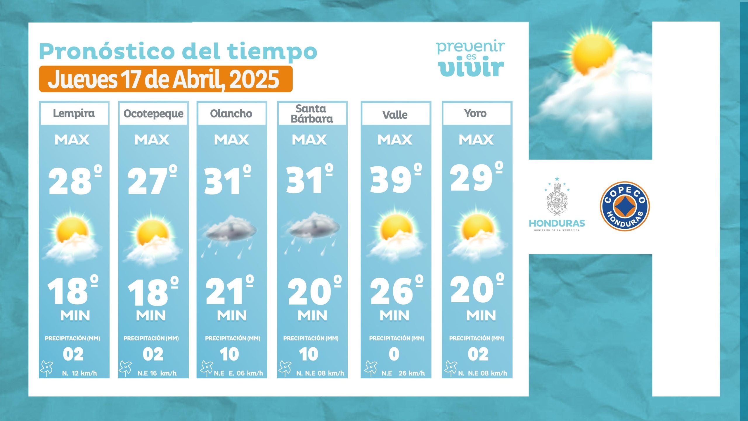 - Choluteca: 38° como máximo, 26° como mínimas (0 milímetros)