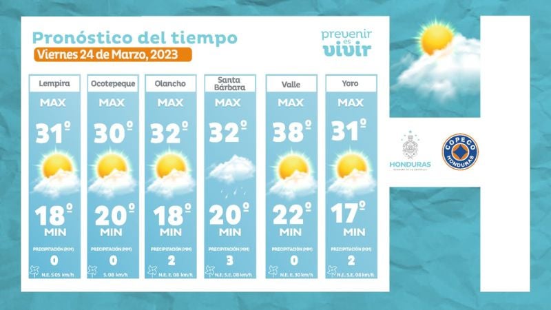 - Choluteca: 37° como máximo, 23° como mínimas (0 milímetros)