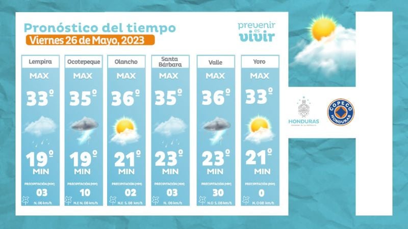 - Tegucigalpa: 30° como máximo, 19° como mínimas (05 milímetros)