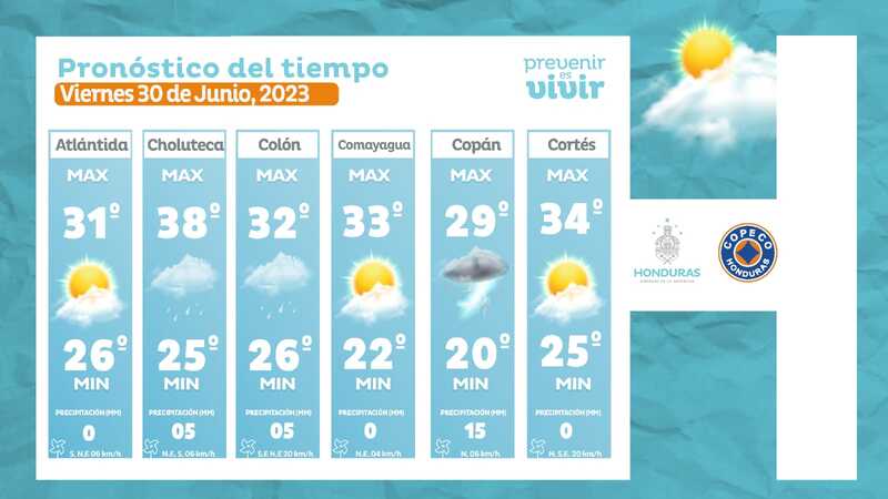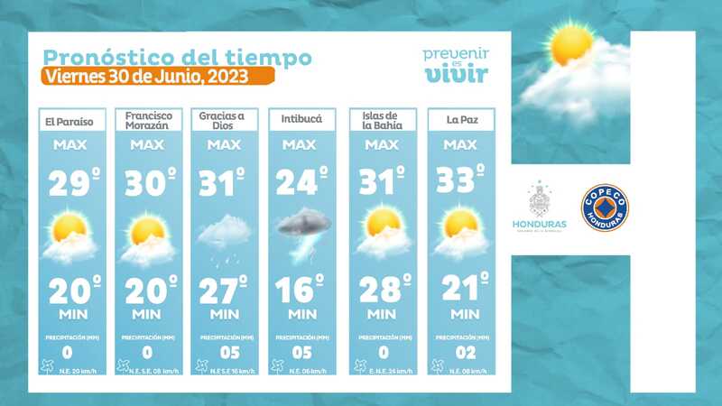 Honduras. Las autoridades del Centro de Estudios Atmosféricos, Oceanográficos y Sismológicos (CENAOS) pronosticaron que este viernes 30 de junio podrían presentarse lluvias.