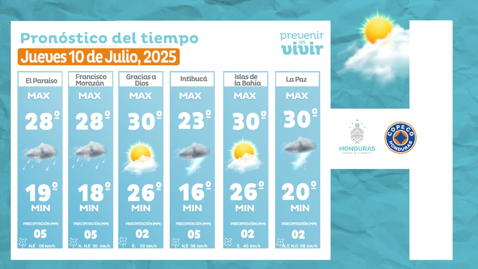 - El Paraíso: 28° como máximo, 19° como mínima (05 milímetros).