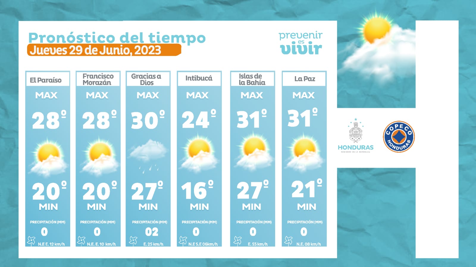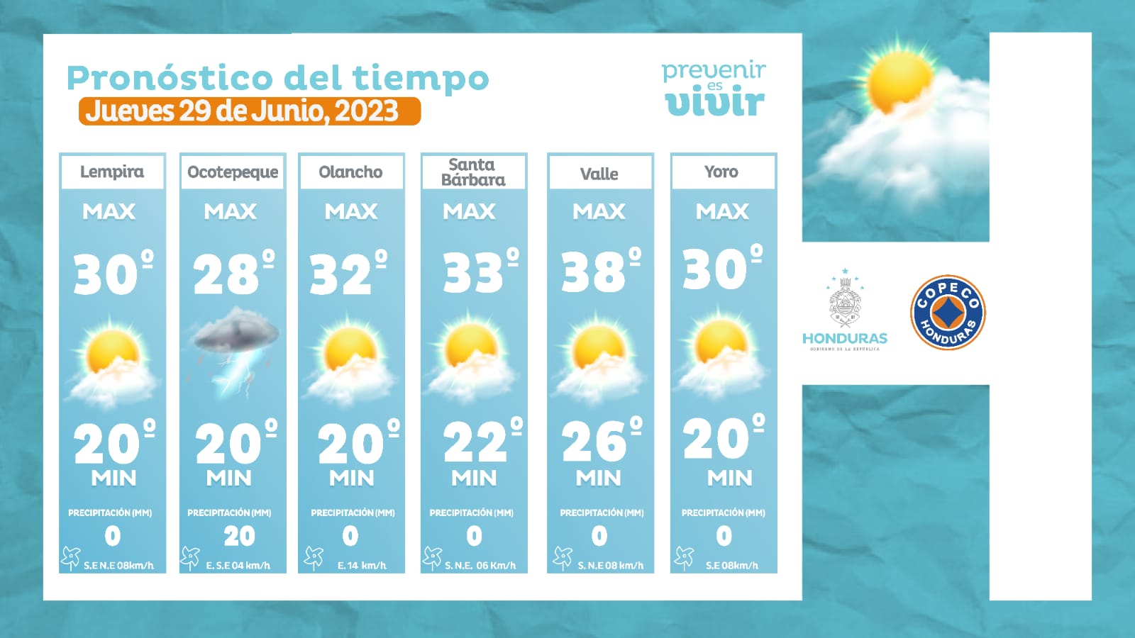 - Choluteca: 38° como máximo, 26° como mínimas (0 milímetros)