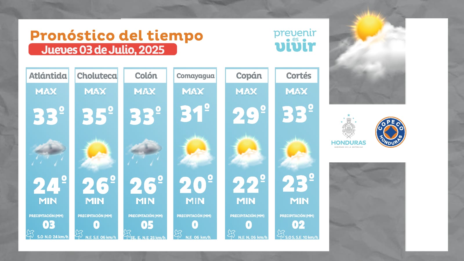 - San Pedro Sula: 33° como máximo, 23° como mínima (02 milímetros).