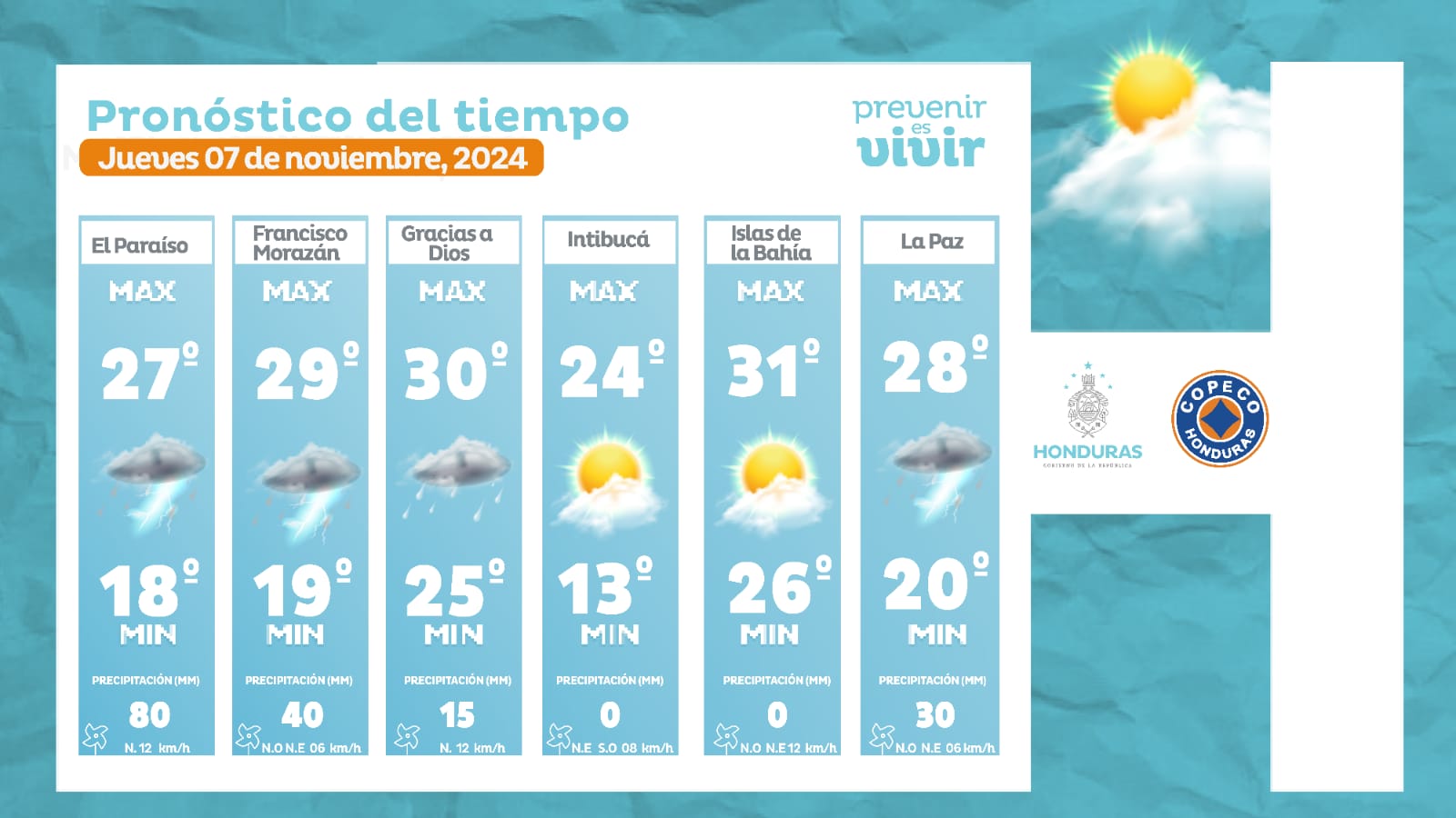 - La Ceiba: 30° como máximo, 20° como mínimas (0 milímetros)