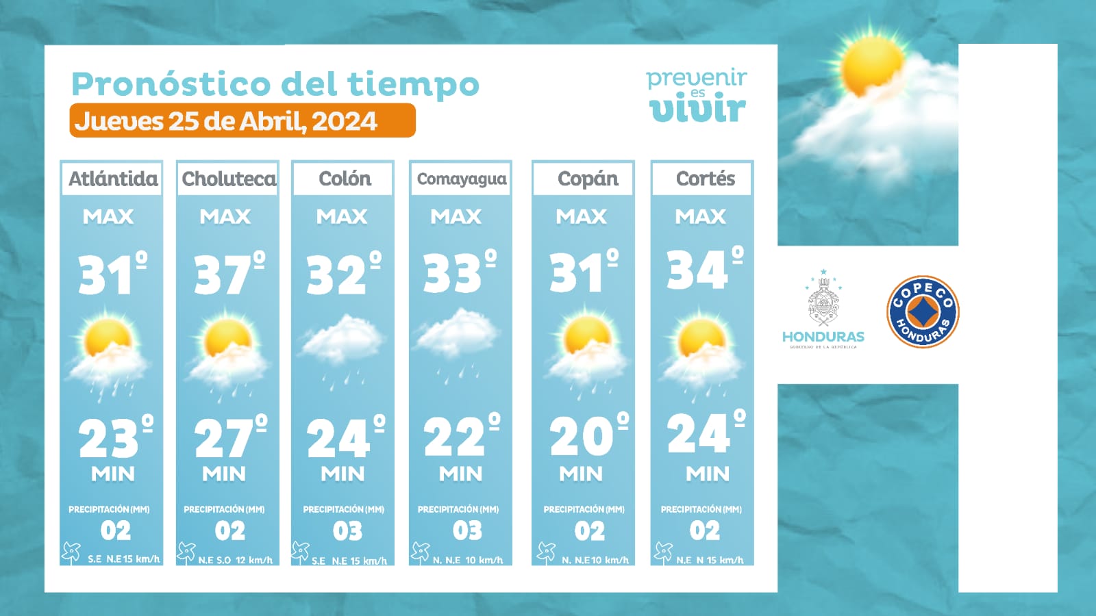 - Olancho: 34° como máxima, 23° como mínima (02 milímetros).