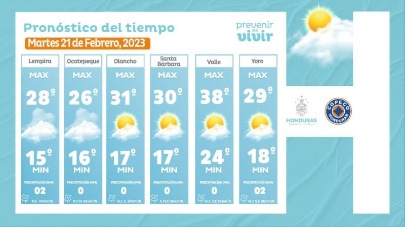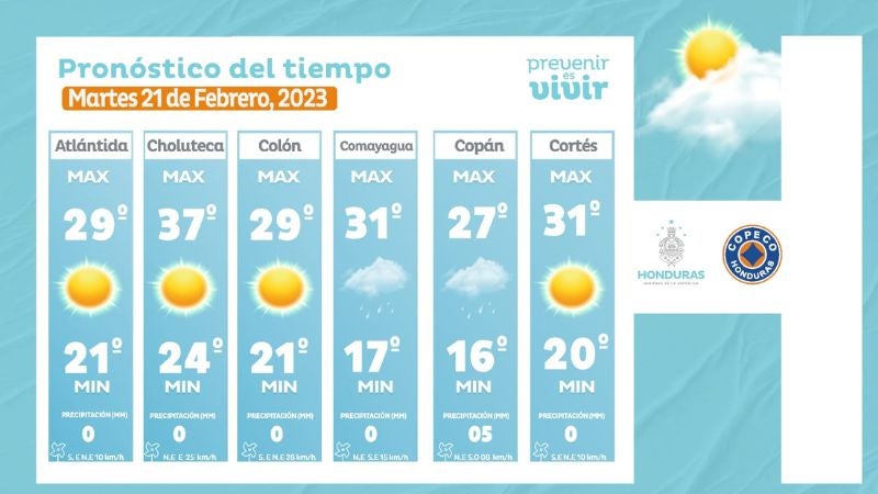 - Comayagua: 31° como máximo, 17° como mínimas (03 milímetros)