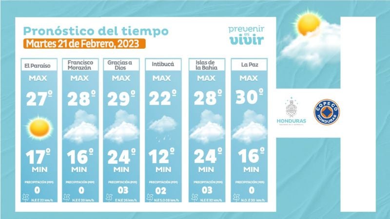 Tegucigalpa, Honduras.– El Centro de Estudios Atmosféricos, Oceanográficos y Sismológicos (CENAOS) pronosticó lluvias y condiciones secas en el territorio nacional para este martes 21 de febrero.