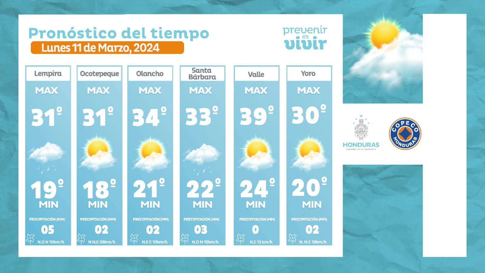 - Olancho: 34° como máxima, 21° como mínima (02 milímetros).