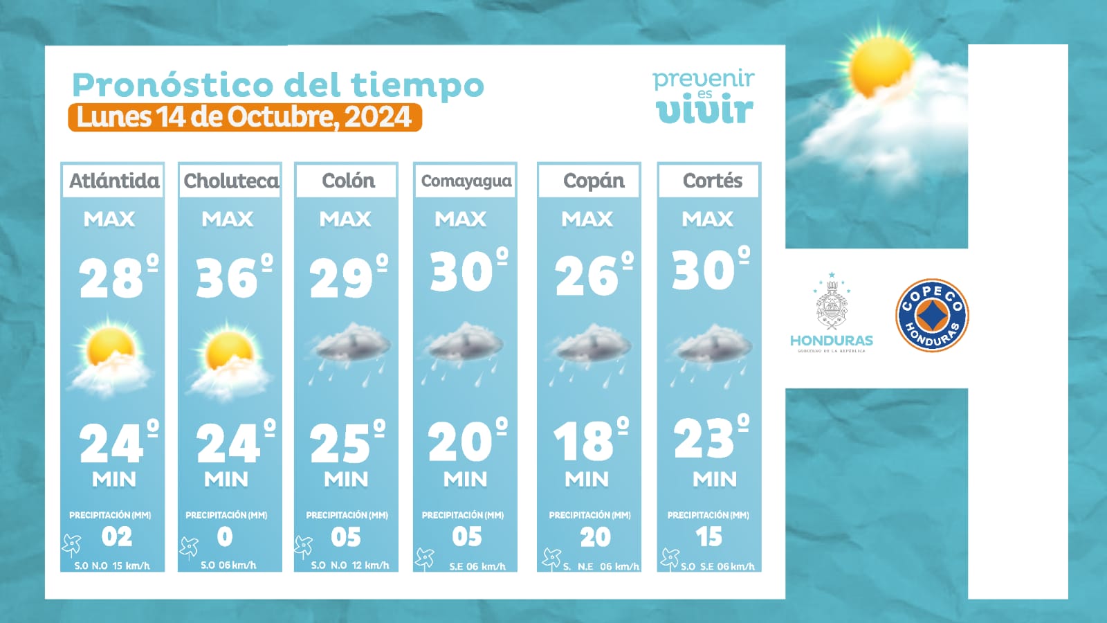 - La Ceiba: 28° como máximo, 24° como mínima (02 milímetros).