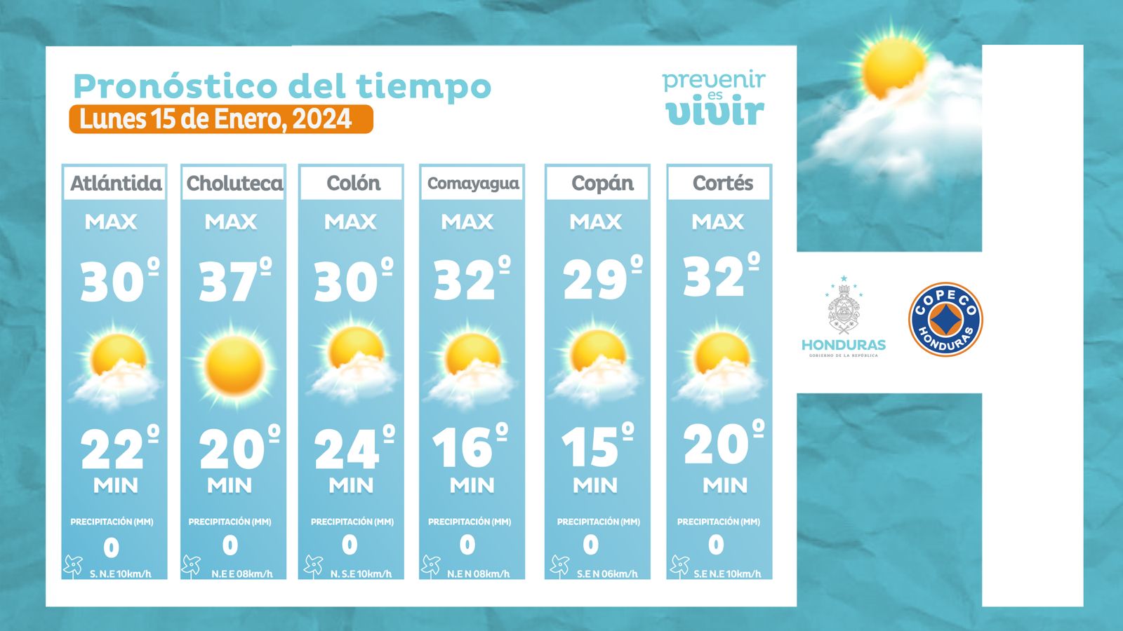 Honduras. El Centro Nacional de Estudios Atmosféricos, Oceanográficos y Sísmicos (CENAOS) informó que este lunes 15 de enero habrá un clima estable y soleado en la mayor parte del territorio nacional.