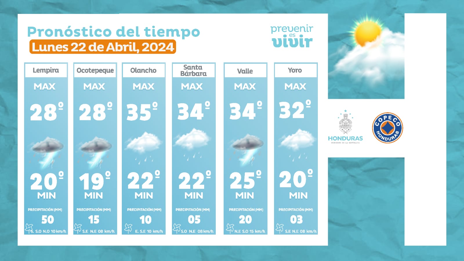 - Ocotepeque: 28° como máxima, 19° como mínima (15 milímetros).