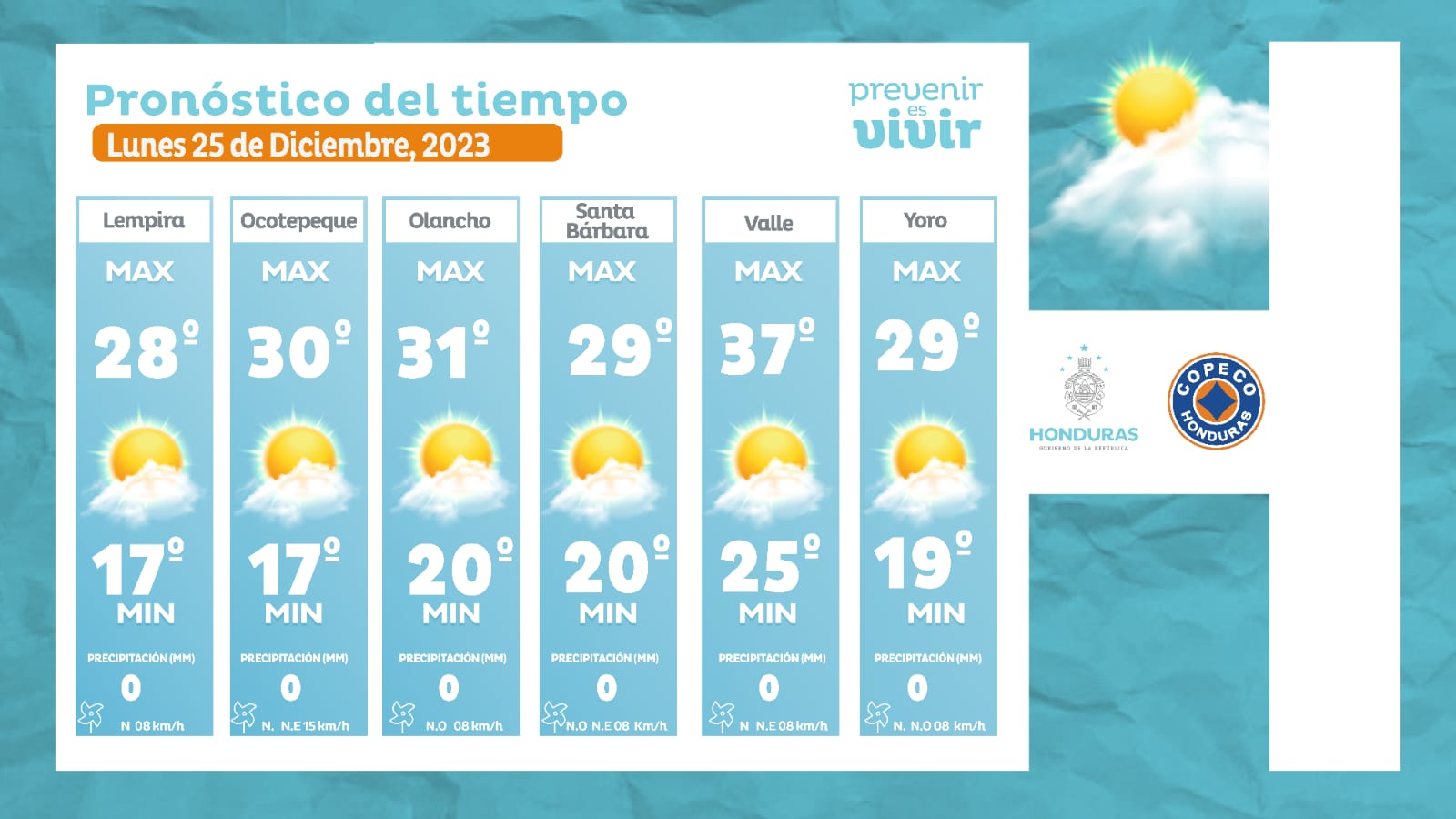 - Choluteca: 37° como máximo, 25° como mínima (0 milímetros).