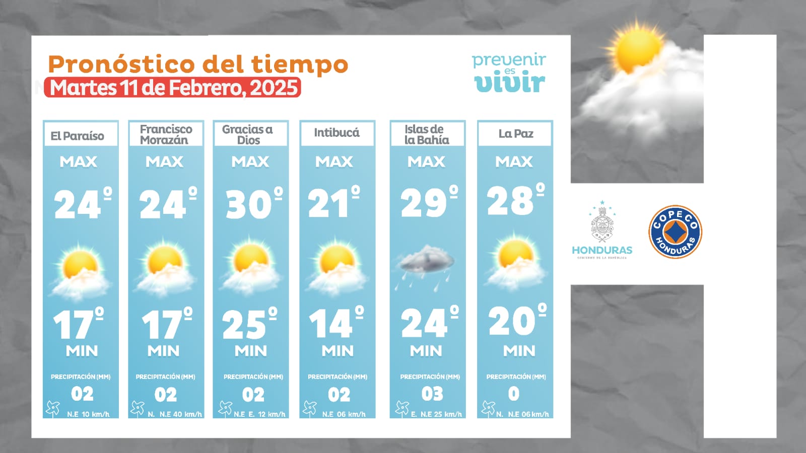 - El Paraíso: 24° como máximo, 17° como mínima (02 milímetros).