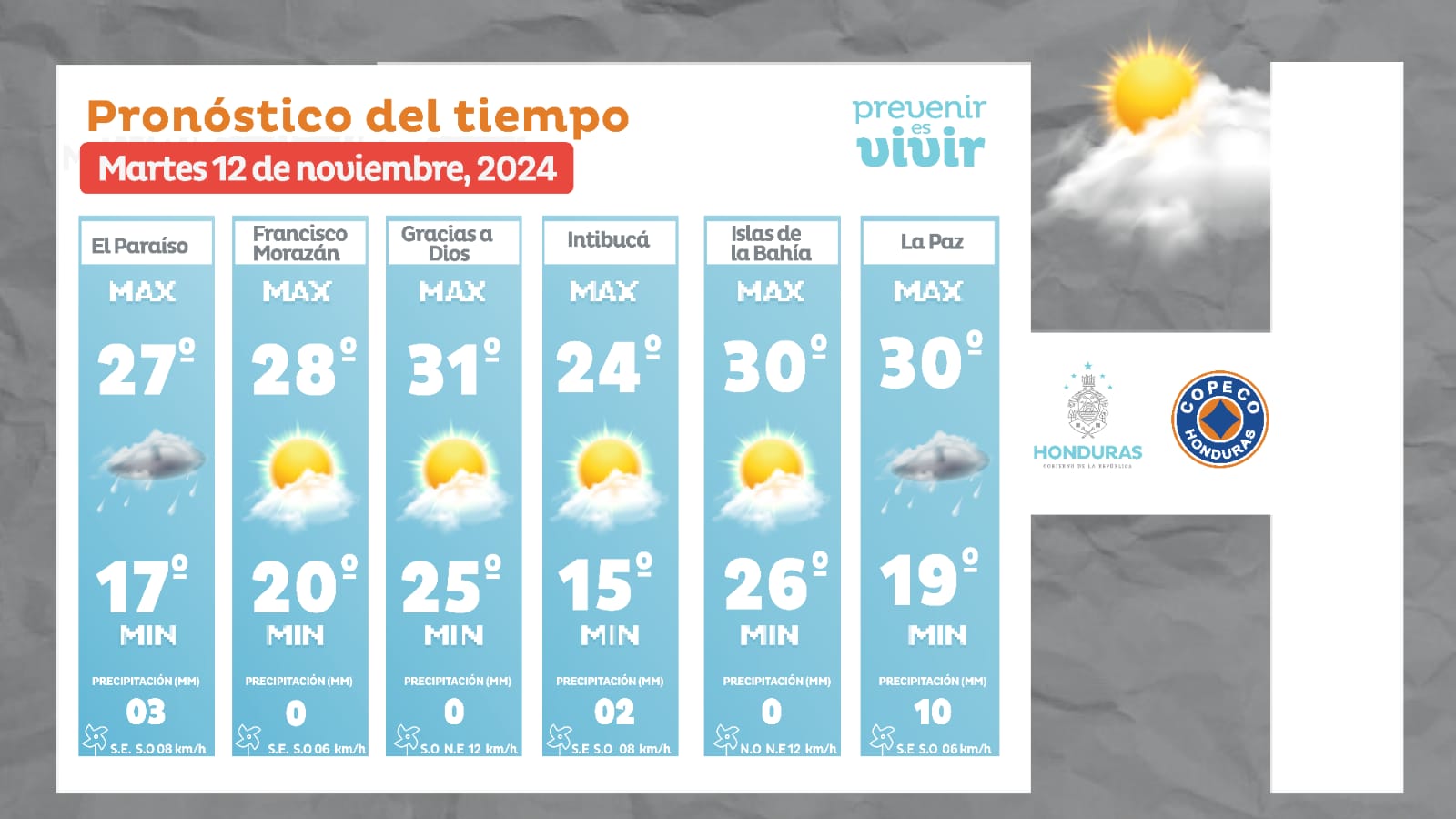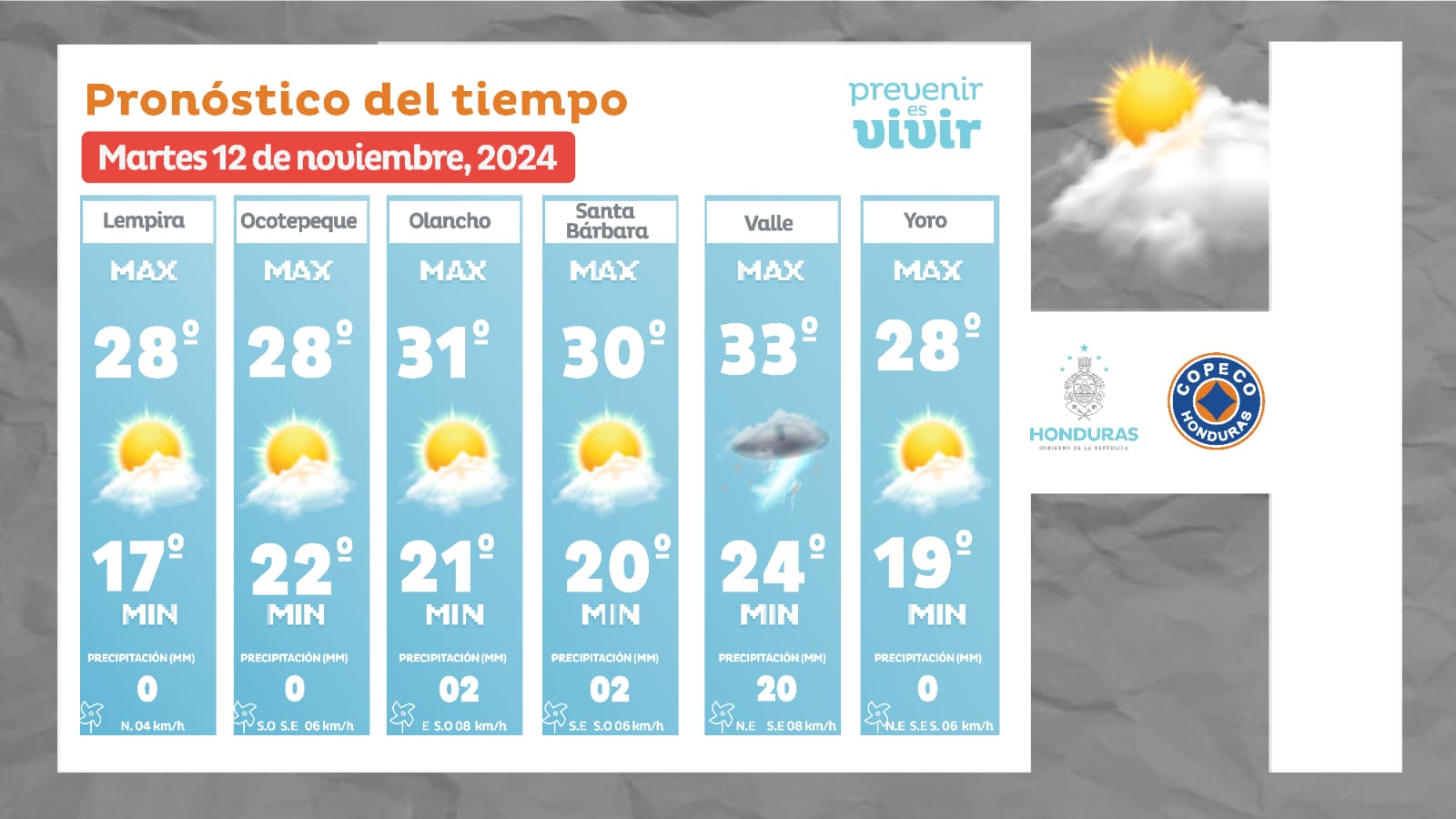 Redacción. El Centro Nacional de Estudios Atmosféricos, Oceanográficos y Sísmicos (CENAOS) informó que este martes 12 de noviembre persistirán un clima seco en varias zonas de Honduras y en regiones del sur del país se podrían registrar lluvias débiles.
