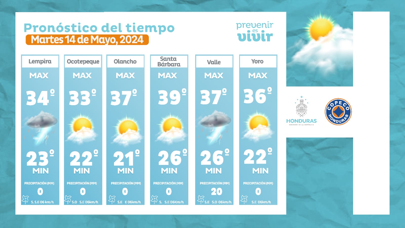 - Olancho: 37° como máxima, 21° como mínima (0 milímetros).