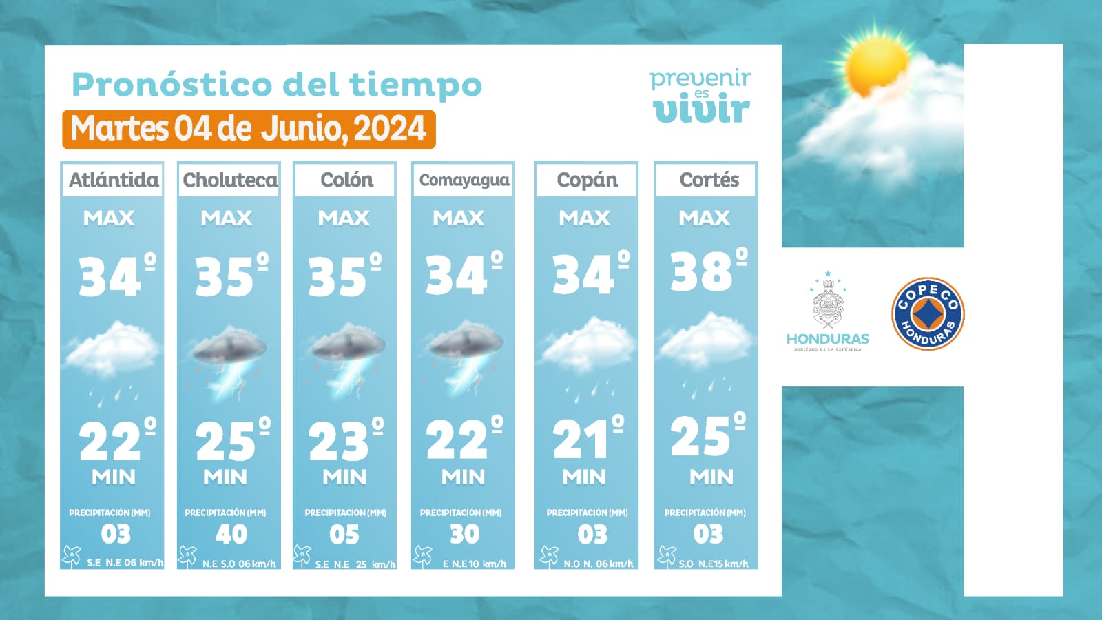- San Pedro Sula: 38° como máximo, 25° como mínimas (03 milímetros)