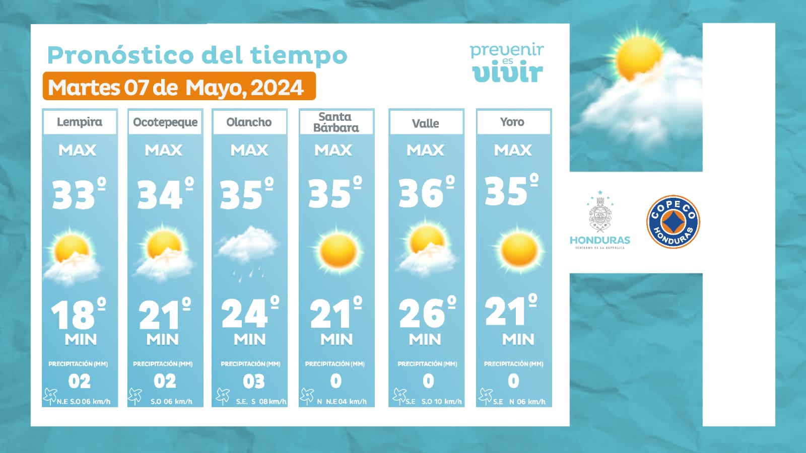 - Ocotepeque: 34° como máxima, 21° como mínima (02 milímetros).