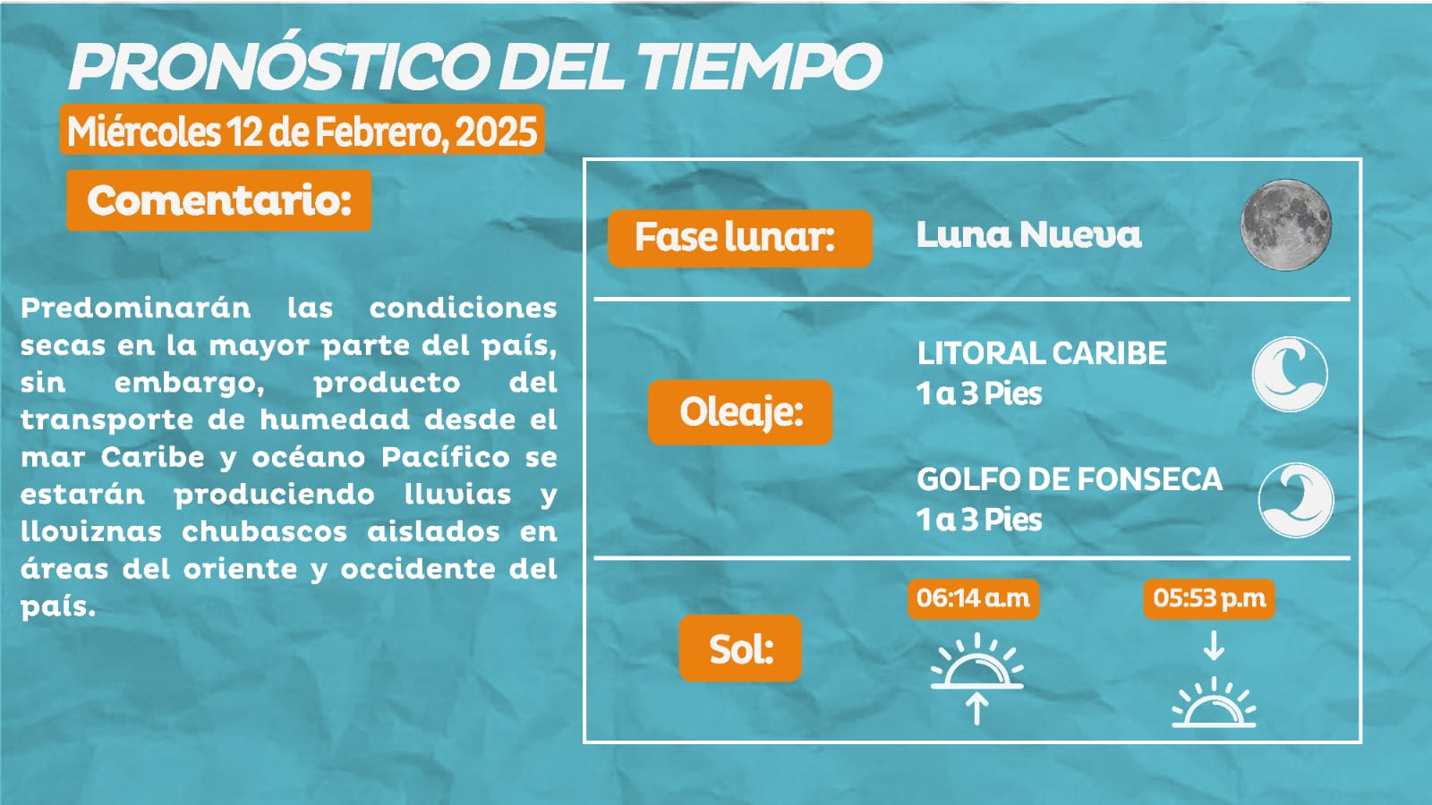 CLIMA. El Centro Nacional de Estudios Atmosféricos, Oceanográficos y Sísmicos (CENAOS) dio a conocer el pronóstico del clima para este miércoles 12 de febrero.