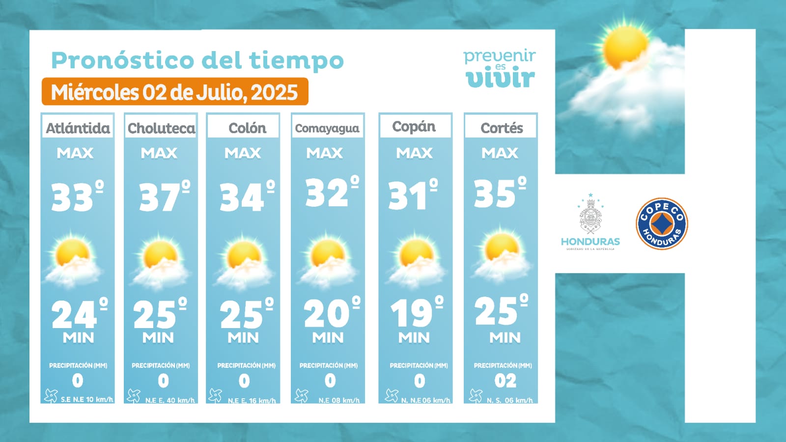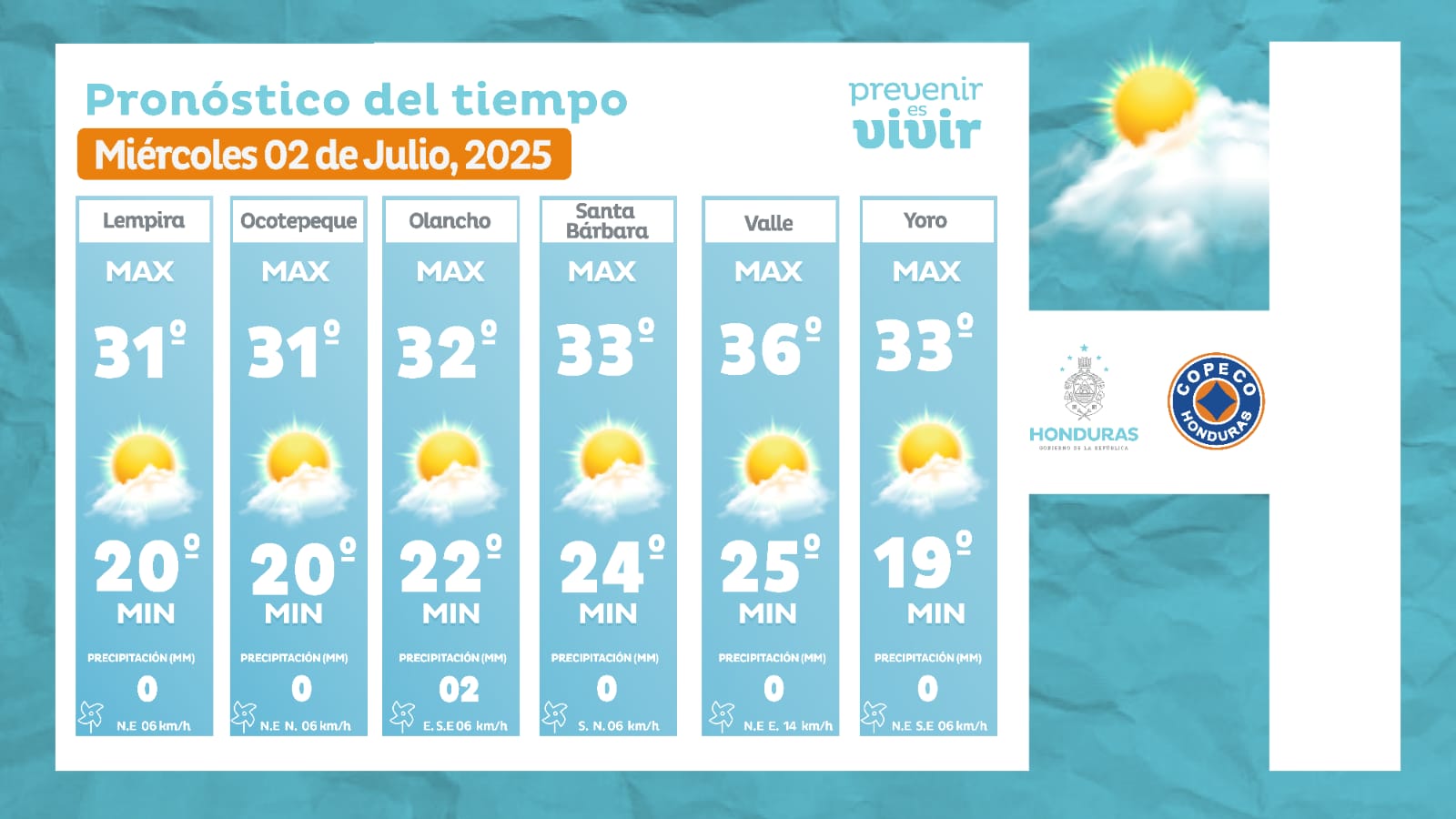 - Olancho: 32° como máxima, 22° como mínima (02 milímetros).