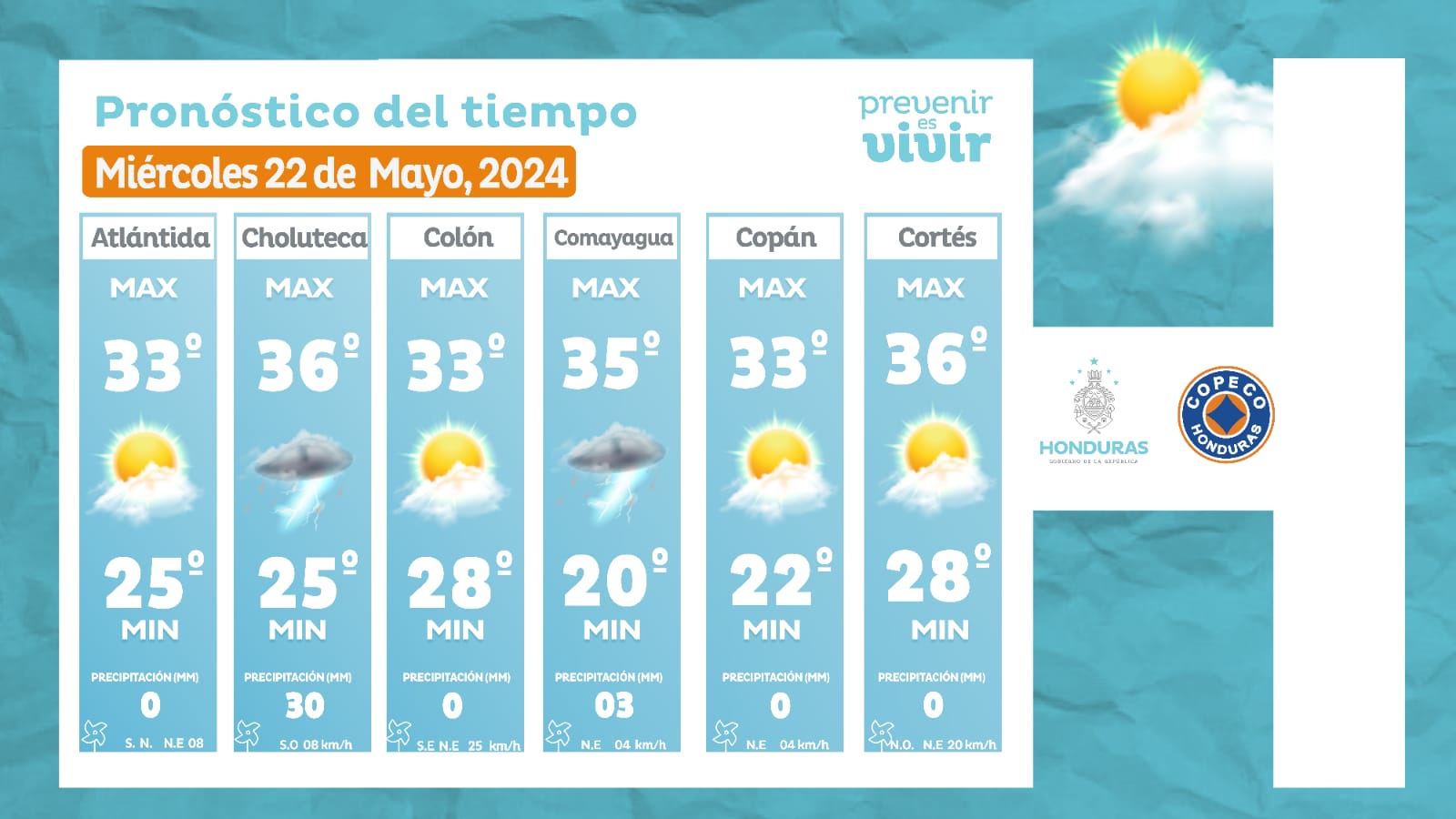 - Tegucigalpa: 32° como máximo, 20° como mínima (05 milímetros).