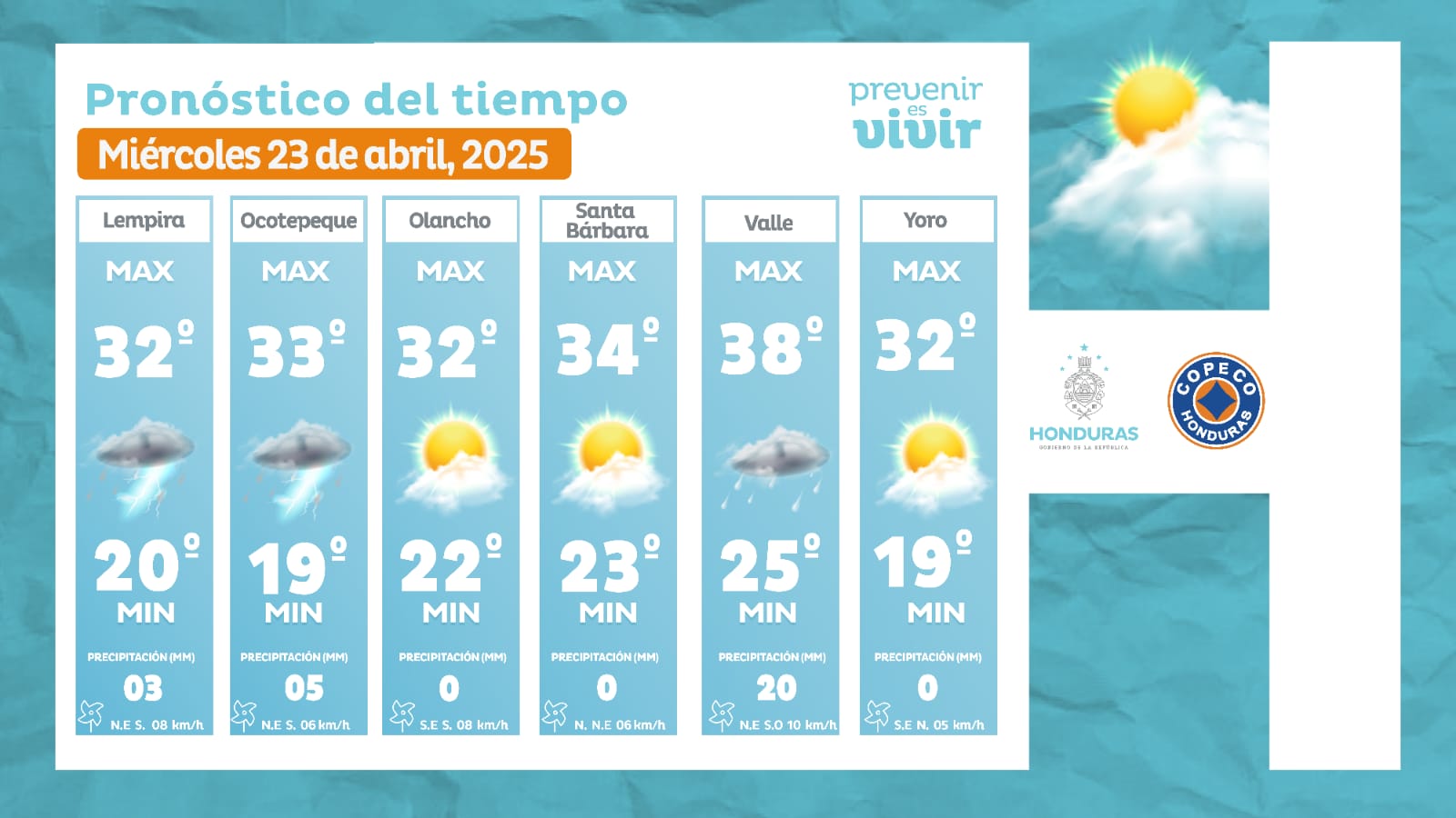 - Choluteca: 38° como máximo, 25° como mínimas (03 milímetros)