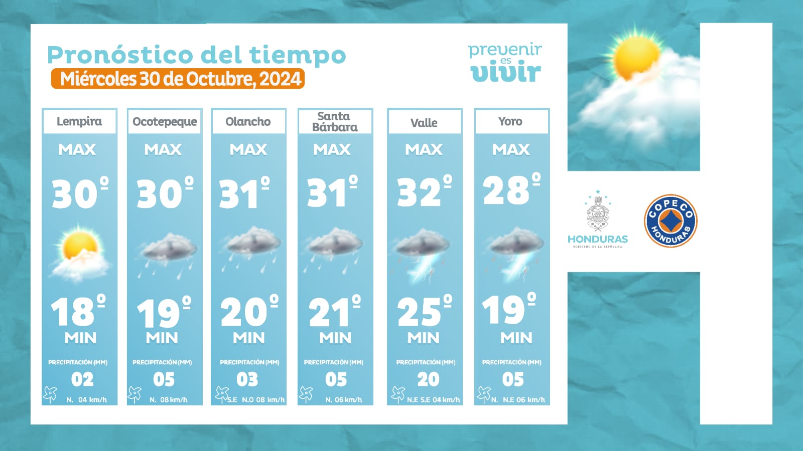 - La Ceiba: 29° como máximo, 21° como mínima (05 milímetros).