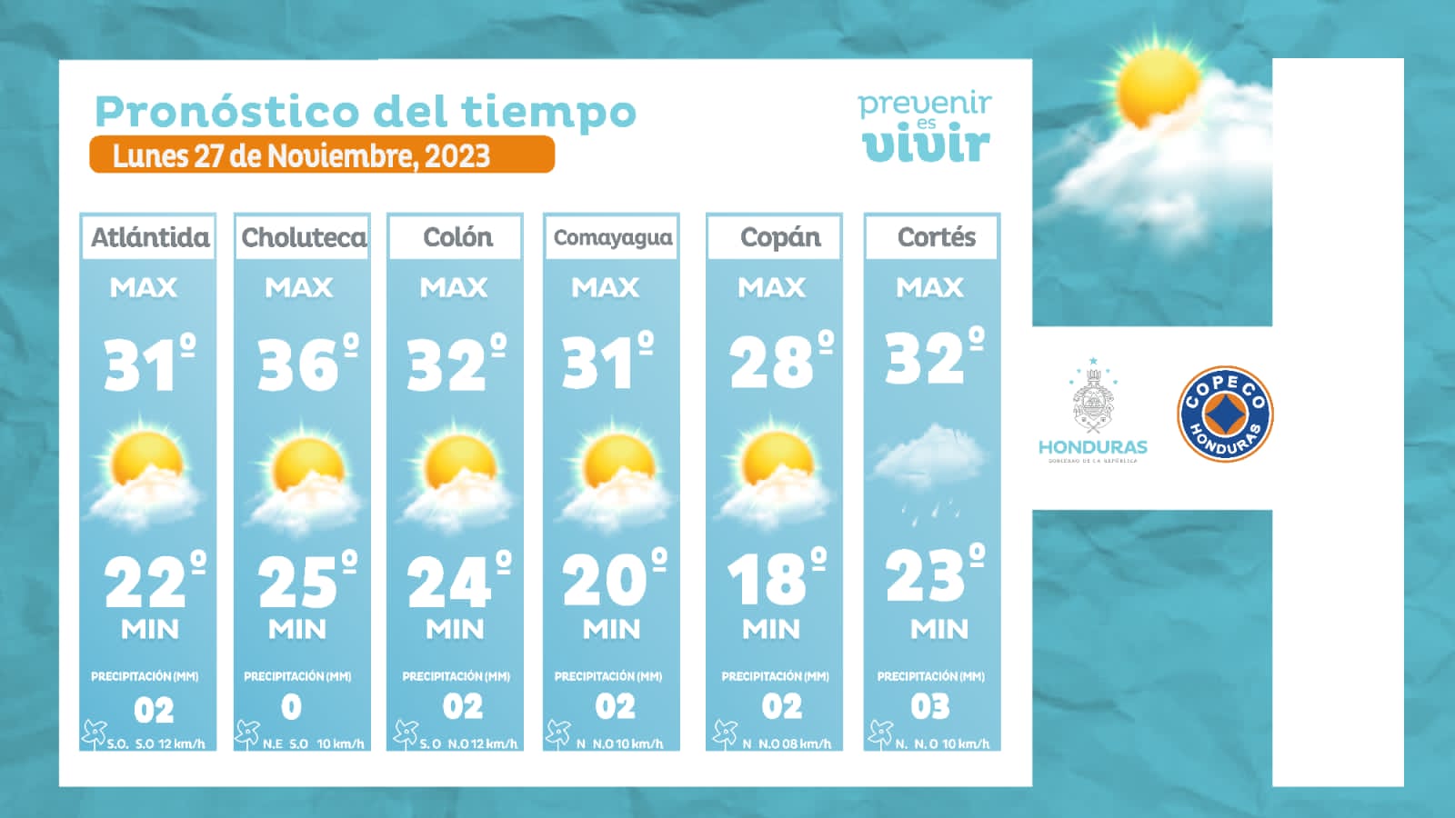 - San Pedro Sula: 32° como máximo, 23° como mínima (03 milímetros).