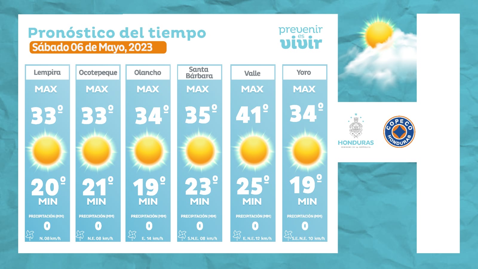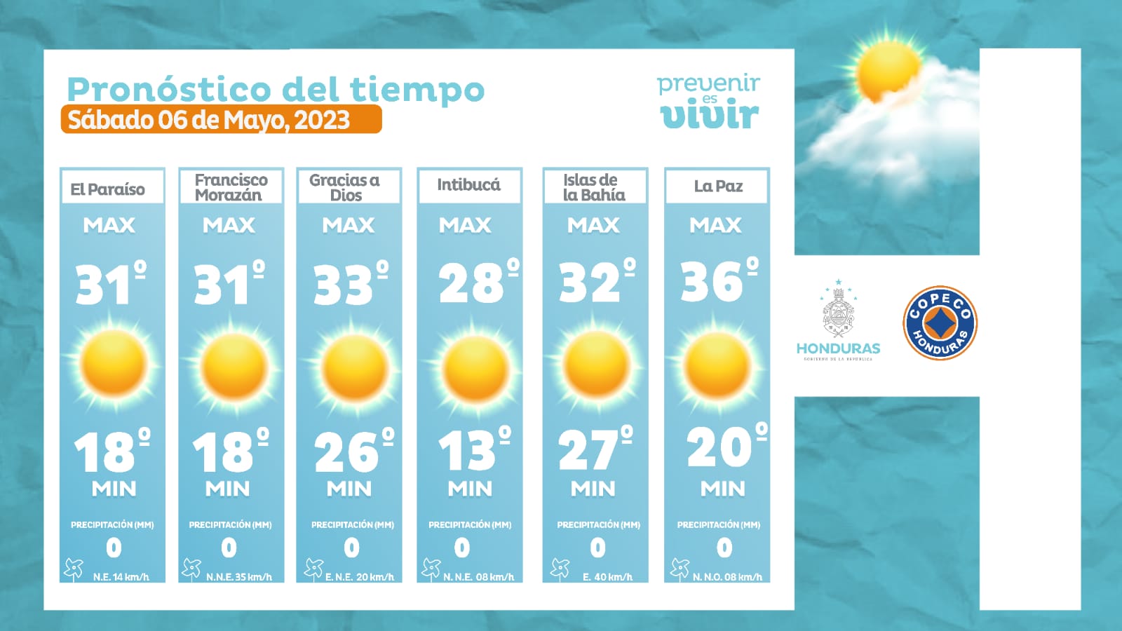- Olancho: 34° como máxima, 19° como mínimas (0 milímetros)