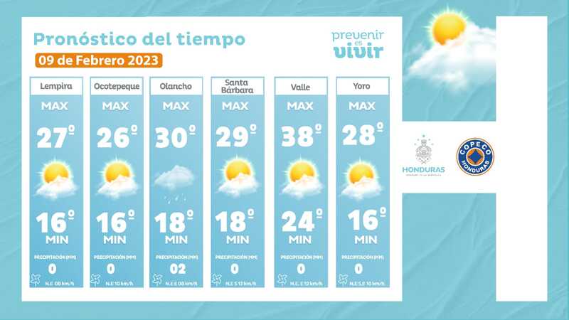 - Choluteca: 38° como máximo, 24° como mínimas (0 milímetros)
