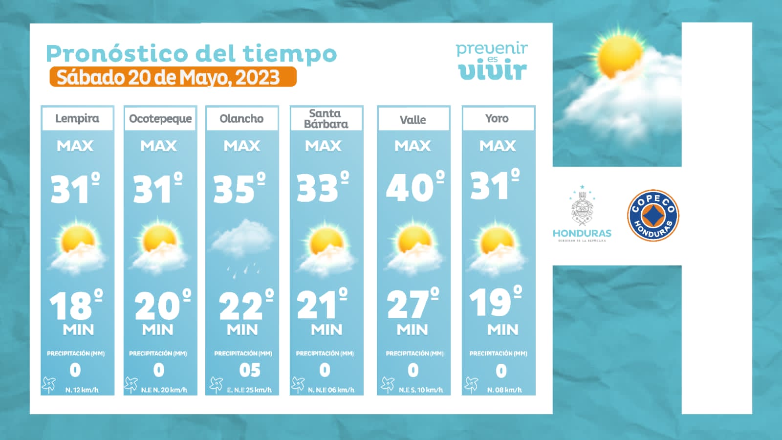 - Olancho: 35° como máxima, 22° como mínimas (5 milímetros)