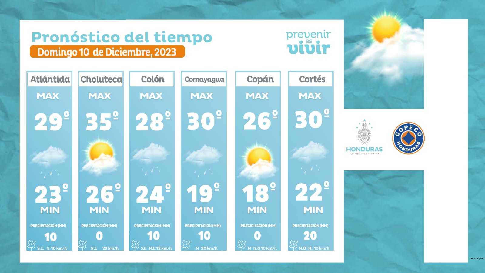 - La Ceiba: 29° como máximo, 23° como mínima (10 milímetros).