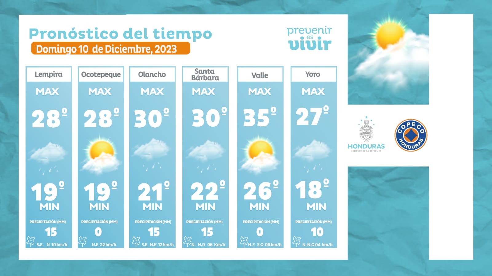 - Ocotepeque: 28° como máxima, 19° como mínima (0 milímetros).