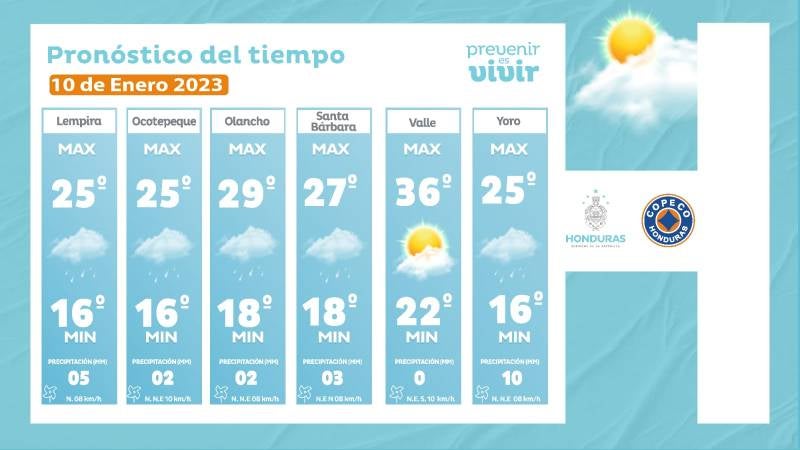 - Choluteca: 36° como máximo, 24° como mínimas (0 milímetros)