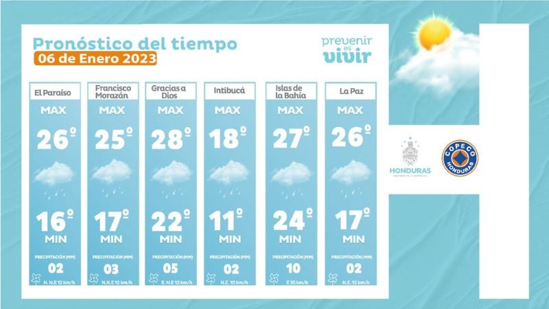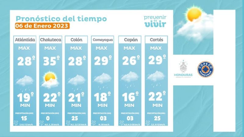El pronóstico se debe a una cuña de alta presión, que generará vientos frescos, incremento de nubosidad y descenso en las temperaturas. En el caso del resto de las regiones de Honduras se esperan precipitaciones aisladas, menos en el sur que tendría condiciones secas.