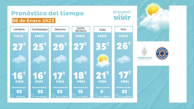 - Tegucigalpa: 25° como máximo, 17° como mínimas (03 milímetros)