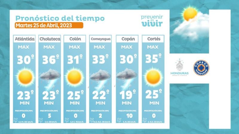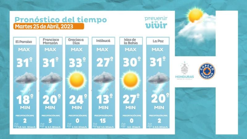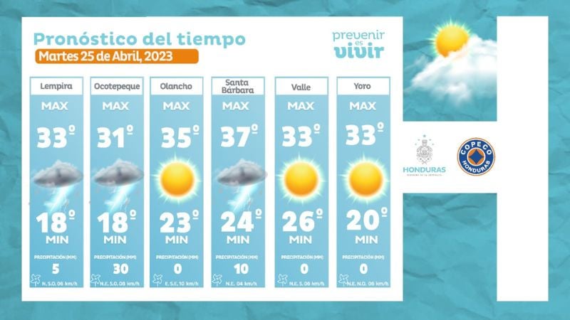 - Tegucigalpa: 31° como máximo, 20° como mínimas (05 milímetros)