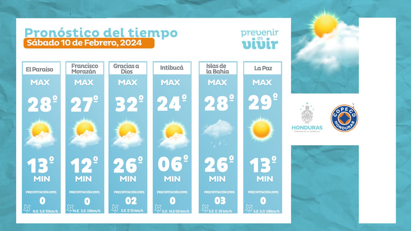 - Intibucá: 24° como máxima, 06° como mínima (0 milímetros).