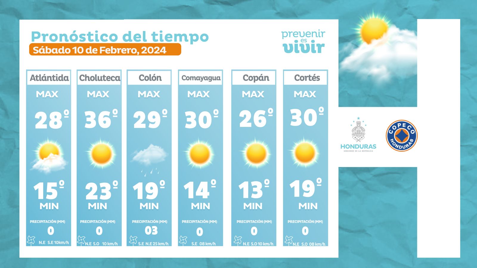 - La Ceiba: 28° como máximo, 15° como mínima (00 milímetros).