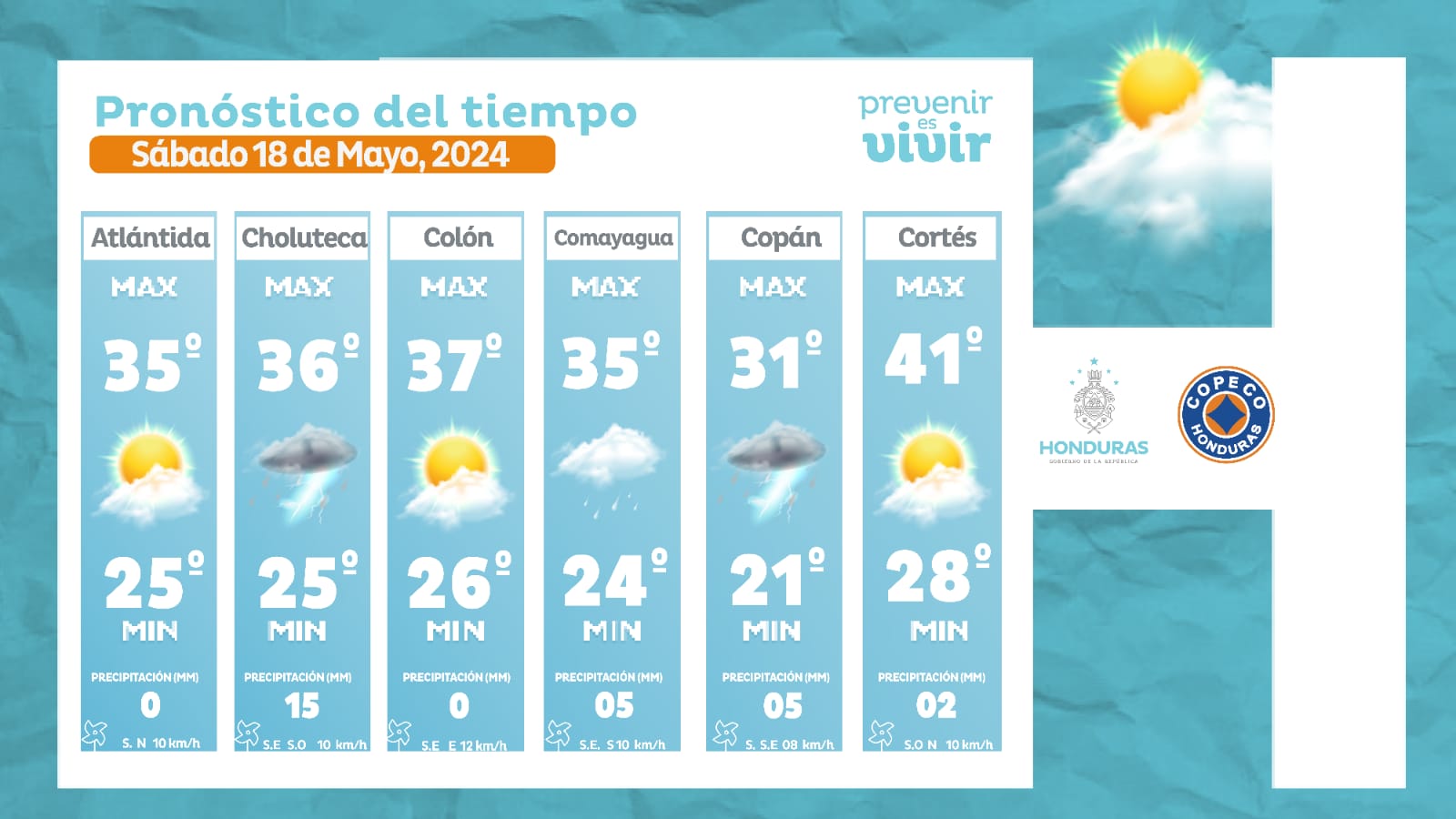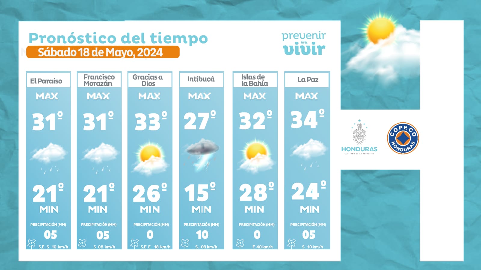 - Ocotepeque: 34° como máxima, 21° como mínima (05 milímetros).