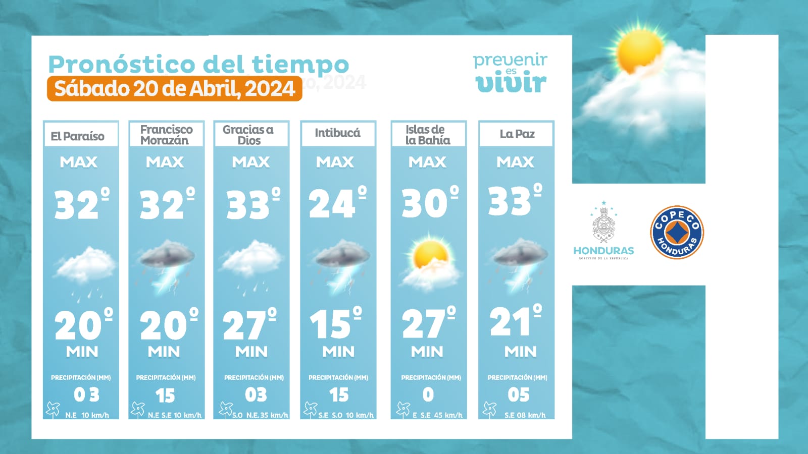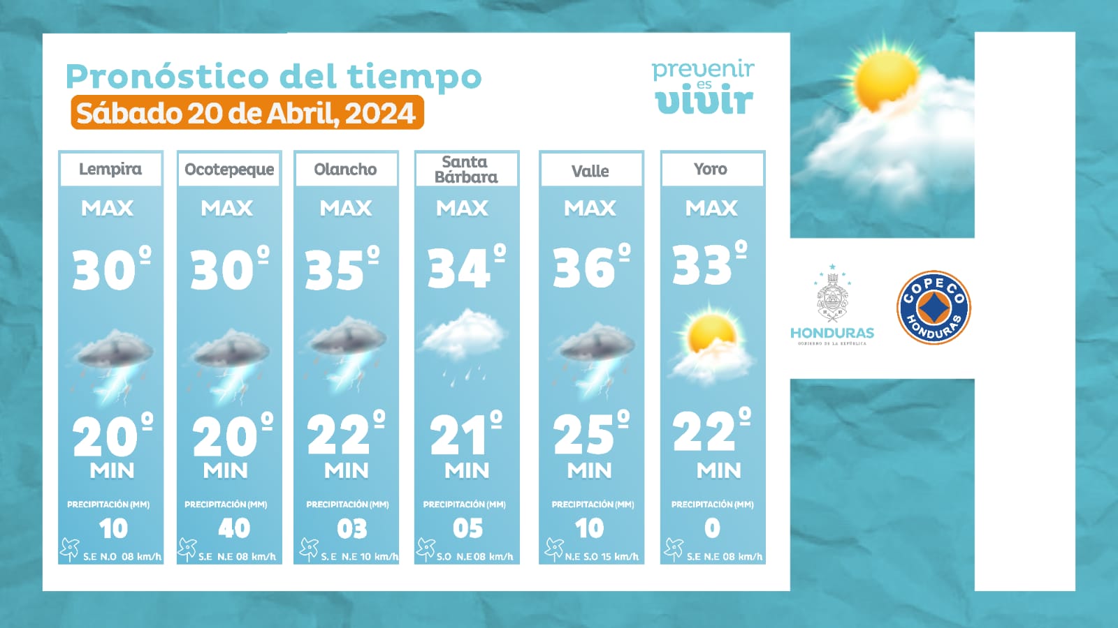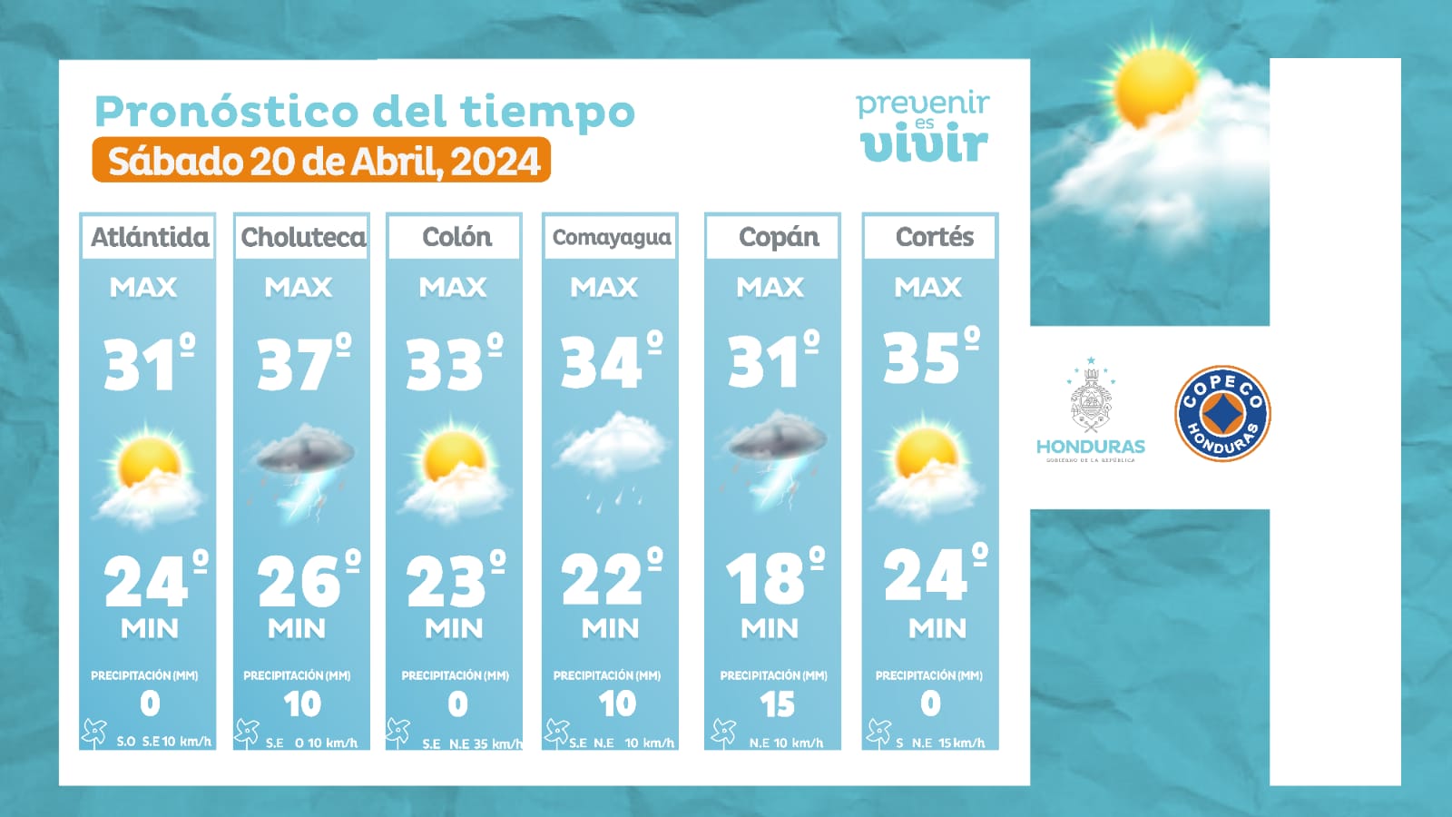 - Choluteca: 37° como máximo, 26° como mínima (10 milímetros).