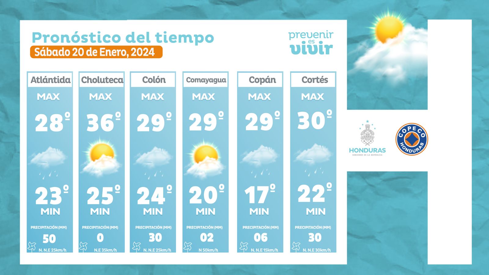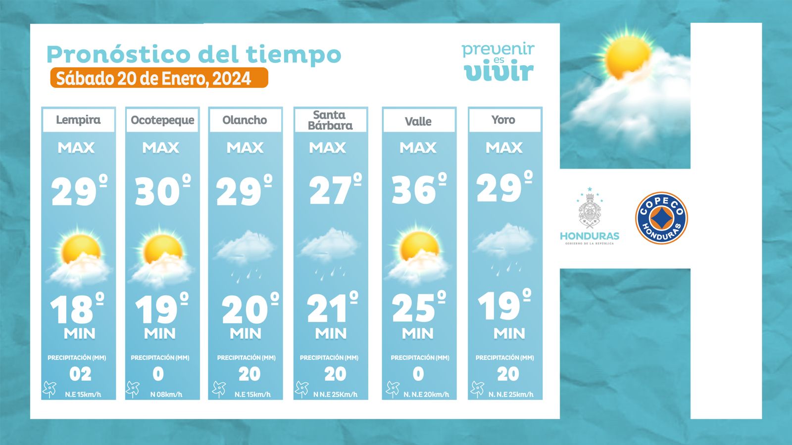 - Intibucá: 24° como máxima, 14° como mínima (0 milímetros).