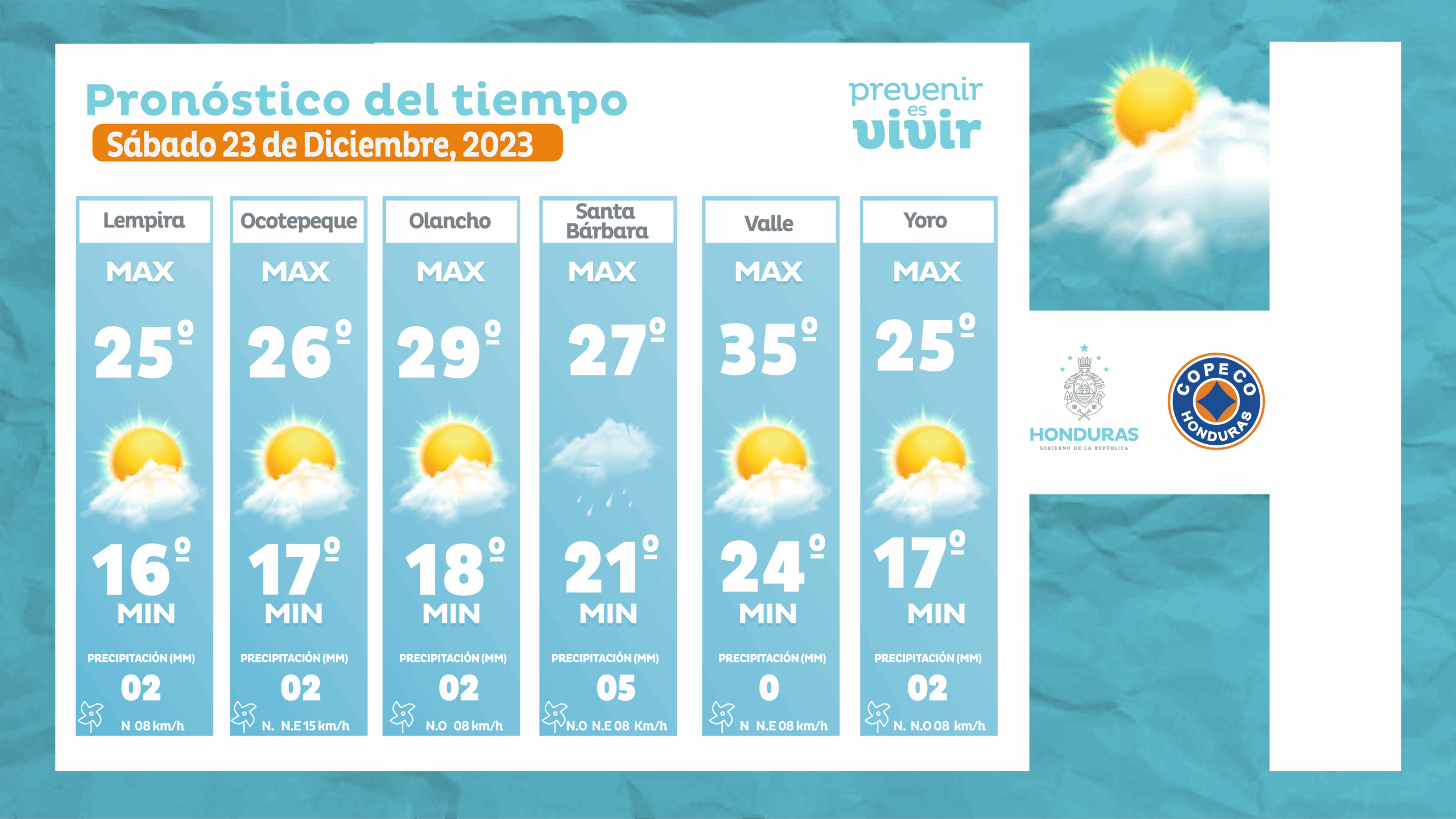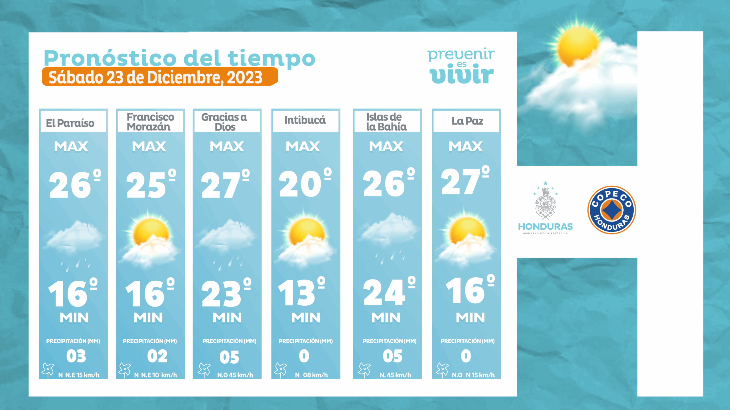 Redacción. Las autoridades del Centro de Estudios Atmosféricos, Oceanográficos y Sismológicos (CENAOS) informaron que este sábado 23 de diciembre habrá lluvias débiles y temperaturas frescas en varias regiones de Honduras.