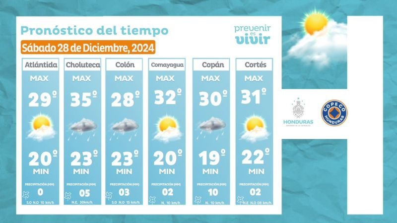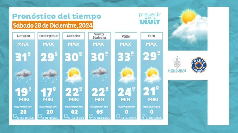 - San Pedro Sula: 31° como máximo, 22° como mínima (02 milímetros).