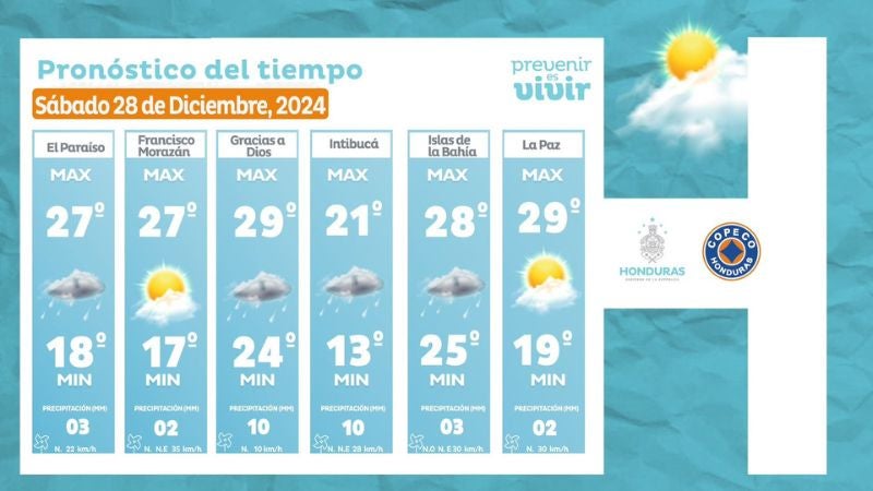 - Tegucigalpa: 27° como máximo, 17° como mínima (02 milímetros).
